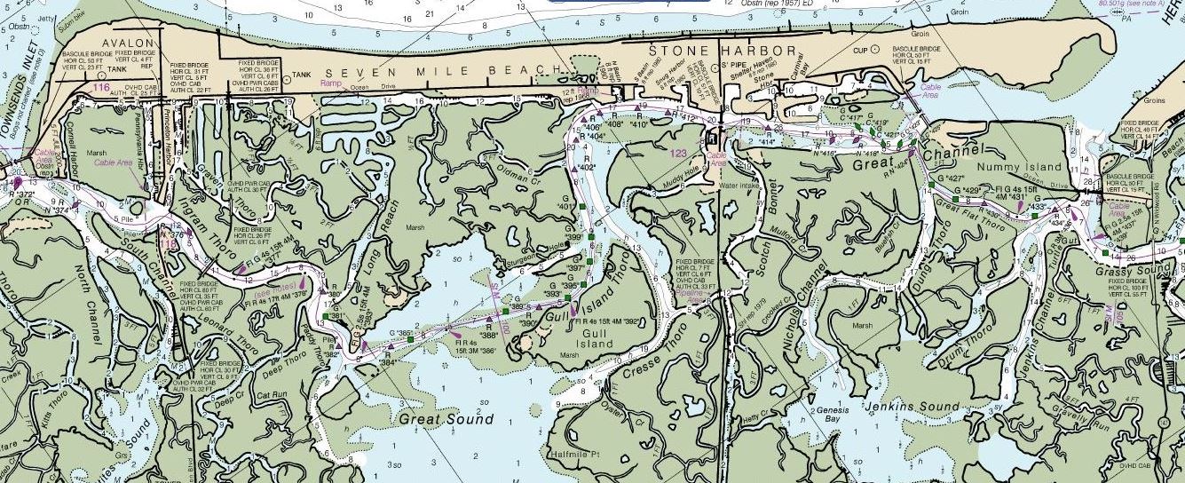 Seven Mile Beach as depicted in NOAA Nautical Chart